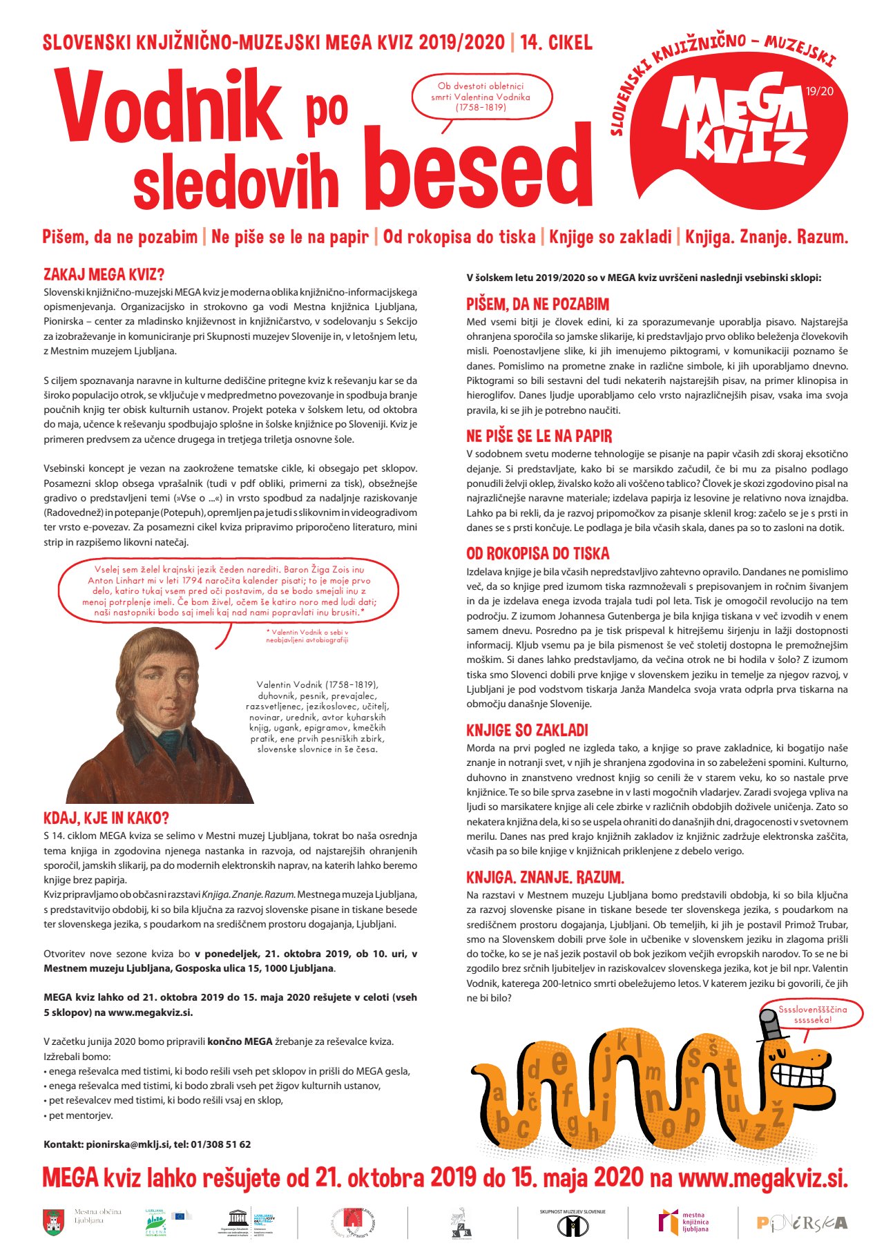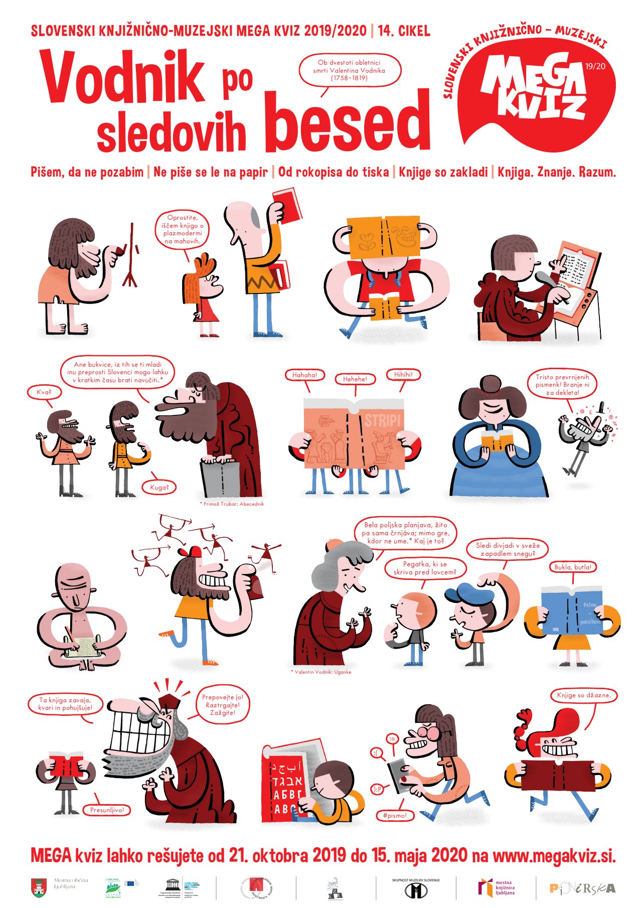 Osrednja tema 14. cikla MEGA kviza je knjiga in zgodovina njenega nastanka in razvoja, od najstarejših ohranjenih sporočil, jamskih slikarij, pa do modernih elektronskih naprav, na katerih lahko beremo knjige brez papirja.