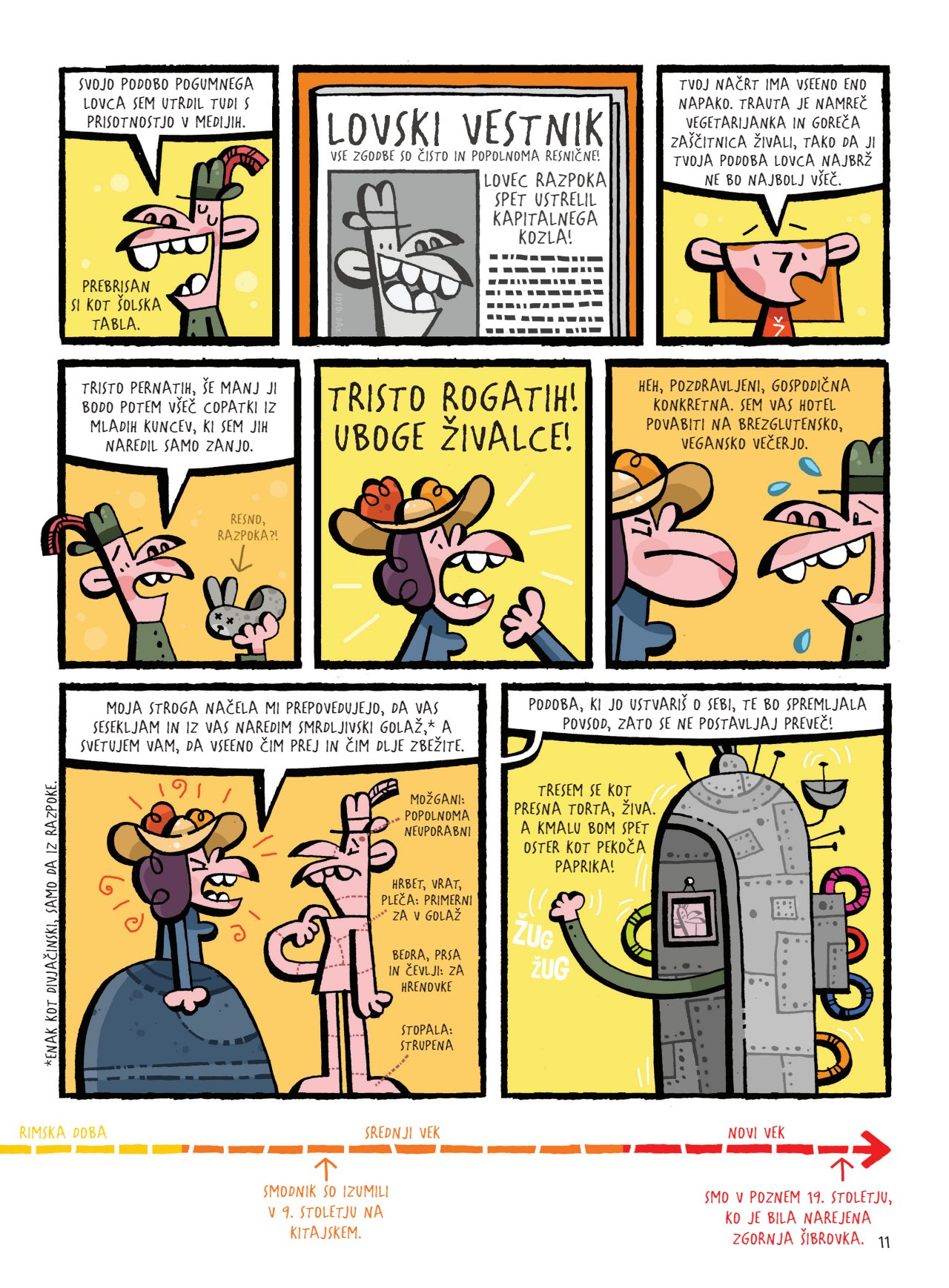 Zgodovina je resna stvar in je o njej treba govoriti v temu primernem resnem, zbranem in strokovno podkovanem tonu. Stripe sva napisala skupaj z Žigo Gombačem, narisal pa sem jih sam.