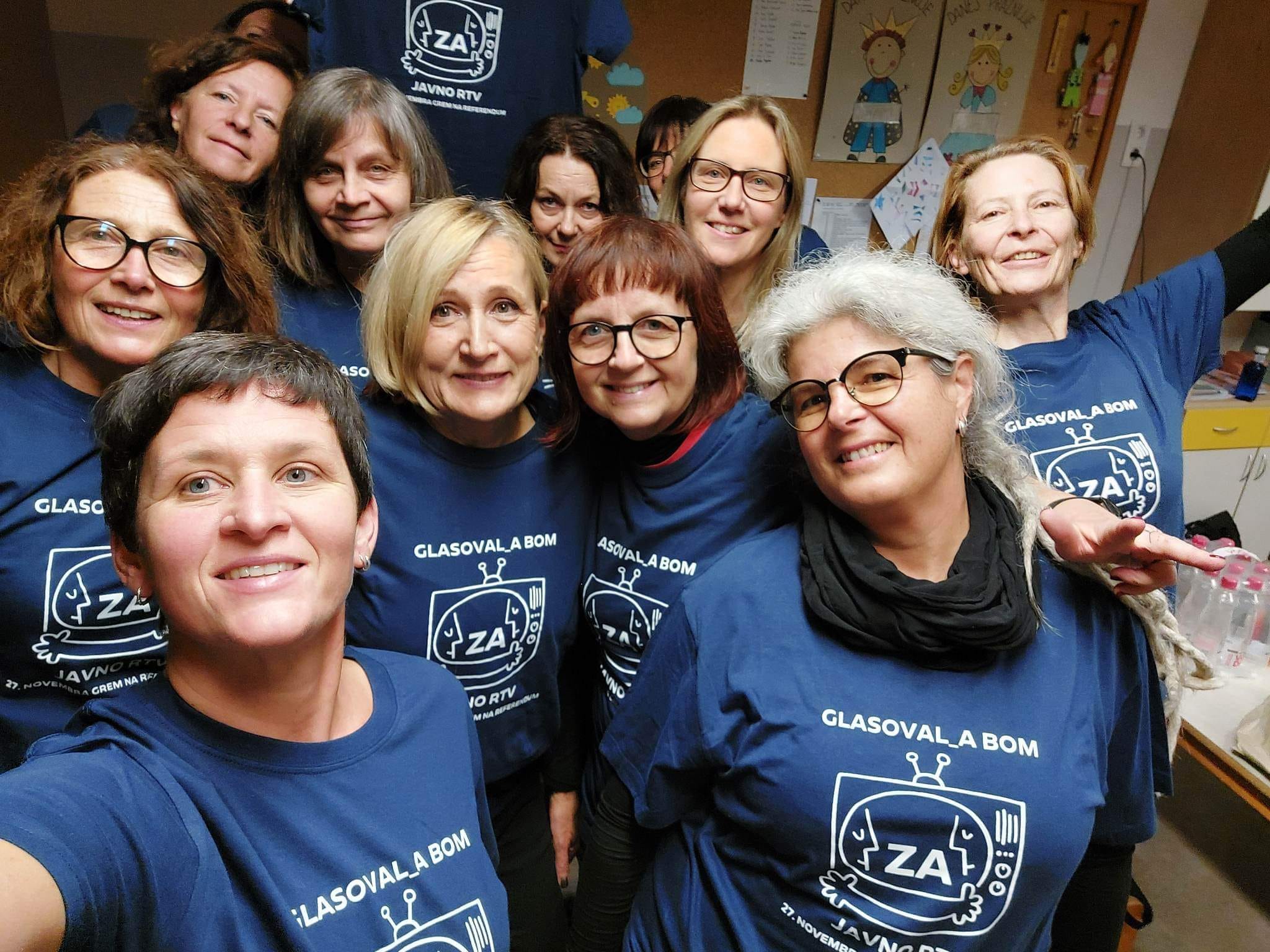 Televizorček sem jaz narisal. Glasovali smo pa vsi. Na fotki je ženski pevski zbor Kombinat.