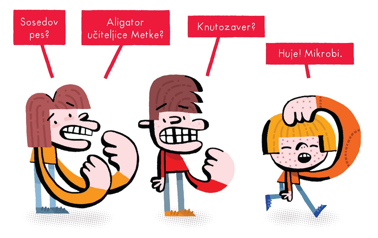 Že odrasli se dostikrat čohljamo za ušesi in se sprašujemo: »Kaj sploh je to?«, pa se ne bi še otroci. Saj res, kaj sploh so otroci? Knjiga, ki pojasni ta pojem in še 24 drugih, od smisla do strahu in od ljubezni do bolezni (z mikrobom povrhu).