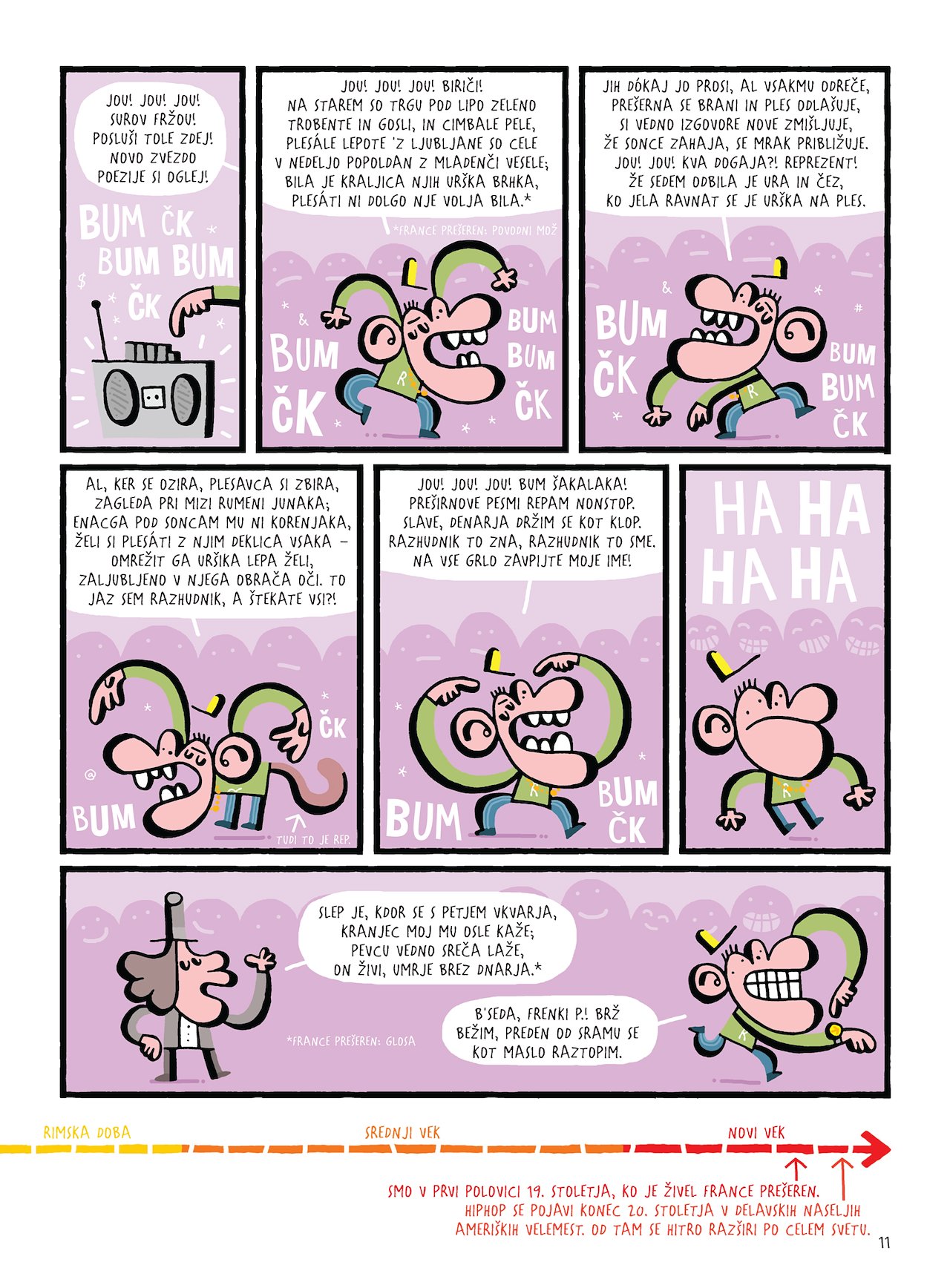 Zbirka kratkih stripov o pomembnih in manj pomembnih epizodah iz zgodovine Slovenije od pradavnine do polpretekle zgodovine. Priporočljivo za otroke in odrasle od druge triade naprej. Pri nastanku je sodelovalo 16 slovenskih muzejev in ena galerija, ki so na koncu knjige tudi kratko in jedrnato predstavljeni. Zabavno! Poučno! Fulšponsko!